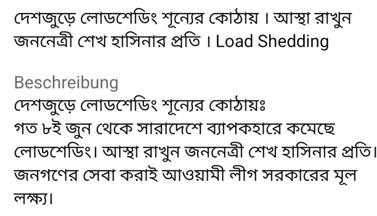 পোস্টে সংযুক্ত ভিডিওতে দাবি করা হয়, ‘৯ জুন লোডশেডিং একেবারে শূন্যের কোটায় নেমে আসে। এদিন বিদ্যুৎ উৎপাদন হয় ১২ হাজার ৫৬৮ মেগাওয়াট। ঢাকা, ময়মনসিংহ, সিলেট, খুলনা, বরিশাল, রাজশাহী ও রংপুরে লোডশেডিং একেবারেই ছিল না। কুমিল্লা ও চট্টগ্রাম বিভাগে উৎপাদনে ঘাটতি হলেও লোডশেডিং দেয়নি জাতীয় লোড ডিসপ্যাচ সেন্টার। ঘাটতি ছিল মাত্র ১.০১ শতাংশ।’
