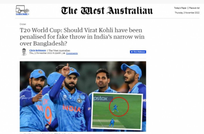 সেভেন স্পোর্টস হেডলাইন করেছে, আম্পায়ারদের নজরে পড়েনি বিরাট কোহলি ‘প্রতারণা।’ সেভেন স্পোর্টস লিখেছে, আইনে ভারতের জন্য ৫ রানের জরিমানা হওয়া উচিত ছিল। যা ছিল তাদের সঠিক জয়ের ব্যবধান।