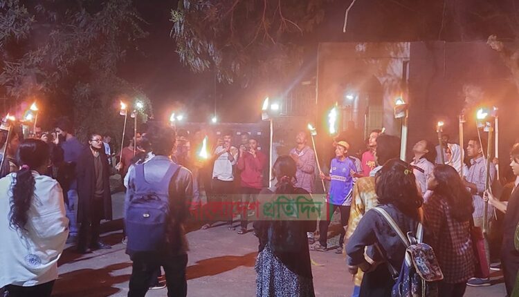 বৃহস্পতিবার রাত ৮টার দিকে বিশ্ববিদ্যালয়ের শহীদ মিনার থেকে মিছিলটি শুরু হয়। পরে এটি বিশ্ববিদ্যালয়ের গুরুত্বপূর্ণ কয়েকটি সড়ক ঘুরে উপাচার্যের বাসভবনের সামনে গিয়ে সংক্ষিপ্ত সমাবেশের মাধ্যমে শেষ হয়।
