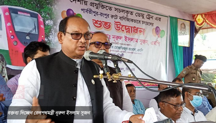 রোববার (৯ অক্টোবর) দুপুরে দিনাজপুরের পার্বতীপুর রেলওয়ে জংশন স্টেশনের আয়োজনে দেশীয় প্রযুক্তিতে সচলকৃত ডেমু ট্রেনের পার্বতীপুর-রংপুর রুটে বাণিজ্যিকভাবে চলাচলের উদ্বোধনকালে তিনি এ কথা বলেন।
